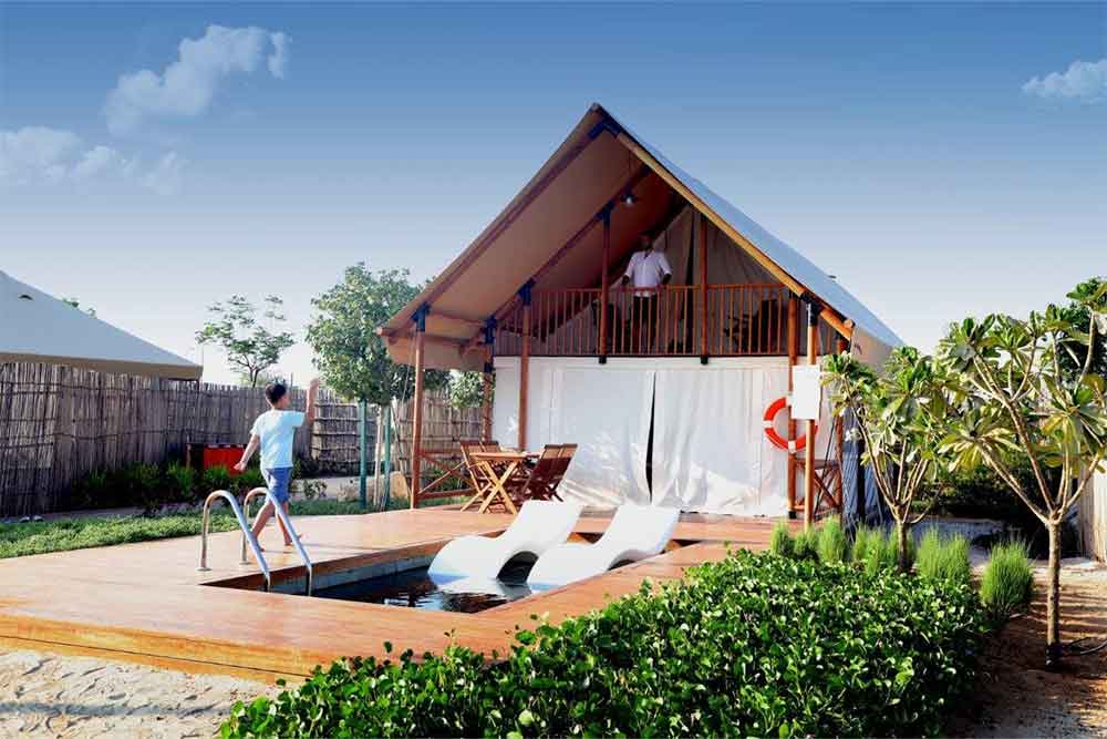 Looking for a luxurious camping experience in Abu Dhabi deserts? Then, Bab Al Nojoum is your place to be. It features Bab Al Nojoum Desert Resort which offers a unique ‘glamping’ experience combining the camping experience with modern facilities, unlike traditional camping.