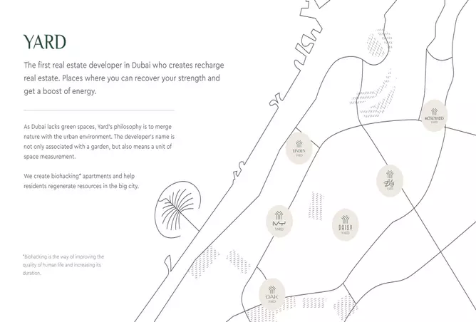 يتألف مشروع OAK YARD من 190 شقة موزعة على 19 طابقًا، ويمزج بشكل متناغم بين الهدوء الطبيعي والرقي الحضري. تم تصميم المشروع ليغمر السكان في هدوء الطبيعة، ويوفر مساحات خضراء واسعة ووسائل راحة مجددة.