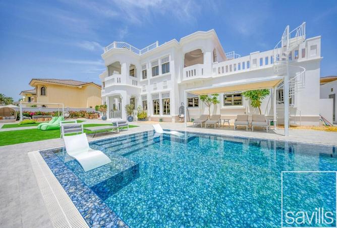 Presenting an opulent 6-bedroom villa in the prestigious Signature Villas, Frond B, located on the iconic Palm Jumeirah. This magnificent residence boasts a generous built-up area of 13,406 sq. ft., offering expansive living spaces and unparalleled luxury.