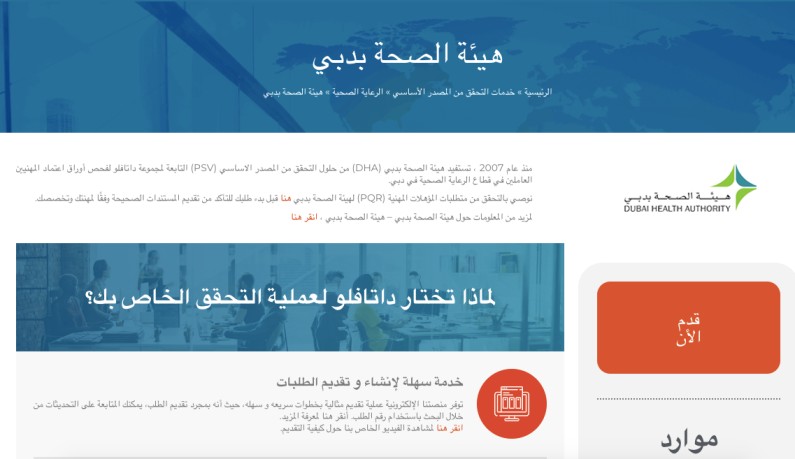 تكمن الخطوة الثانية في التسجيل في موقع داتا فلو، والذي يقوم بدوره بالتحقق من الخلفية التعليمية للمتقدمين الذين تقدموا بطلب للحصول على ترخيص هيئة الصحة بدبي وإظهار نتائج المؤهلين لهذه للعمل في القطاع المطلوب.
