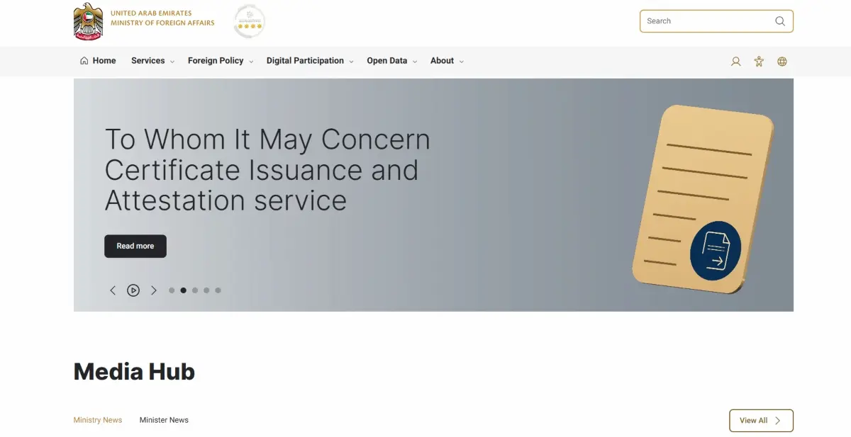 If you are applying within the UAE, you can visit MOFA’s official website. Here, you start the service after registering for its platform via the UAE Pass.
