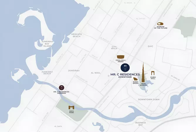 Mr. C Downtown Dubai, a curated downtown living experience, where every detail exudes elegance. A crafted world of luxury shopping, fine dining, and exclusive lifestyle destinations await.