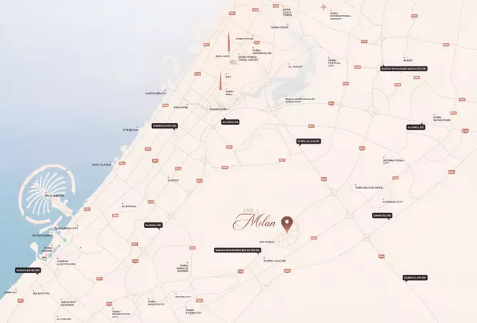 Facing Dubailand, it is located in an area that is set to flourish and has its surrounding communities, retailing centers, entertainment destinations, and recreational areas. Its direct road access establishes an easy commute to the major arteries of the city that makes residents minutes away to the Downtown Dubai region, the Mall of the Emirates, the Dubai International Airport, and other upcoming lifestyle awakening destinations. This strategic location makes the façade a reference of tranquil escapade amidst the noise of the city and a strategic location that is never out of reach to all the day to day features needed.