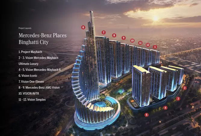 Vision Mercedes-Maybach 6 represents a rare mix of iconic automotive design and high-end residential planning inside the world’s first Mercedes-Benz branded city. Developed by Binghatti Holding in partnership with Mercedes-Benz, this premium project brings a new level of branded living to Dubai. Located inside Mercedes-Benz Places | Binghatti City in Nad Al Sheba, Dubai, Vision Mercedes-Maybach 6 features two striking towers with a total of 1,844 residences. Each home reflects the signature Mercedes-Maybach style, with refined details, elegant finishes, and a strong focus on comfort and quality.