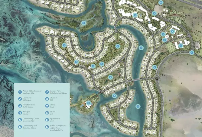 Surrounded by thousands of mangrove trees, picturesque estuaries and a sparkling waterfront, Ain Al Jubail villas overlook the bay with incredible views of a thriving ecosystem amidst a vibrant community. The villas are an ideal home characterized by state-of-the-art architecture, lavish space, and modern designs suitable for luxurious and exceptional lifestyles in a low-density environment.