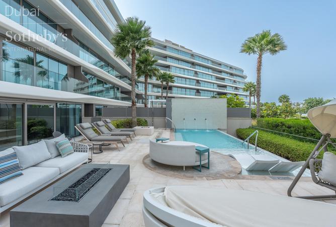 This is a unique luxury property with a range of bespoke features that make it stand out. In addition to being fully furnished with Fendi furniture, the apartment comes with a stunning outdoor terrace with its own private swimming pool, waterfront Palm views and is being sold with its artwork. The layout of the apartment is well planned, with a modern flow, spacious living areas and two kitchens, a Bulthaup kitchen and a preparation kitchen, both with Miele appliances. It also has been expertly finished with wooden flooring, a 12-seater dining table, maid’s room and laundry room. Each of the three generously proportioned bedrooms have their own en-suite bathroom. The large private terrace comes with its own al fresco dining area, Napolean BBQ and a 6x3m private pool, all of which overlook the expansive Palm Jumeirah views.