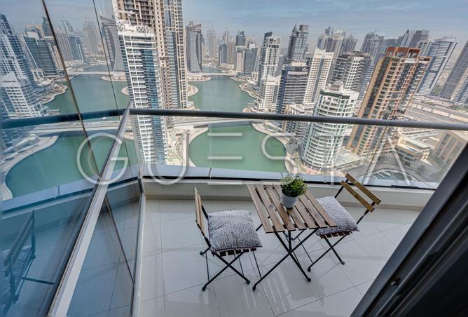 Perched on the 27th floor, this holiday apartment boasts a generous space of 65 m2/704 sq. ft., catering perfectly to solo travelers or couples. The accommodation comprises a bedroom with an ensuite bathroom and wardrobe, a welcoming living room with a sofa bed, a fully equipped kitchen, and a balcony that affords captivating vistas of the stunning Dubai Marina.
