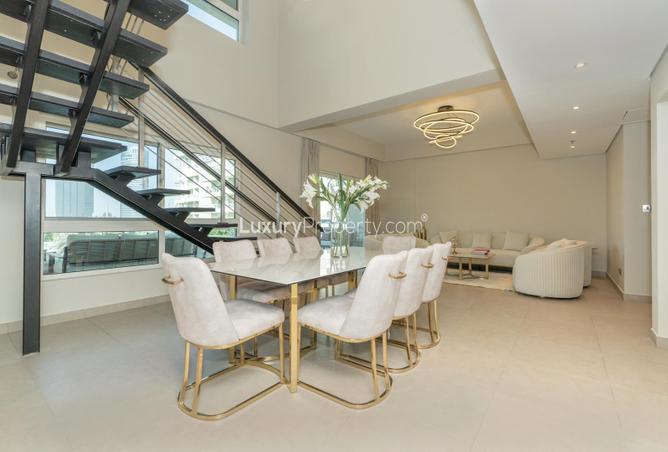 We are proud to present this fully furnished 3-bedroom duplex apartment in Jumeirah Heights, located in Block B of the West Cluster. This well-maintained home offers spacious living areas, large windows that welcome abundant natural light, and a calm, inviting ambiance throughout the day, leading beautifully into sunset.