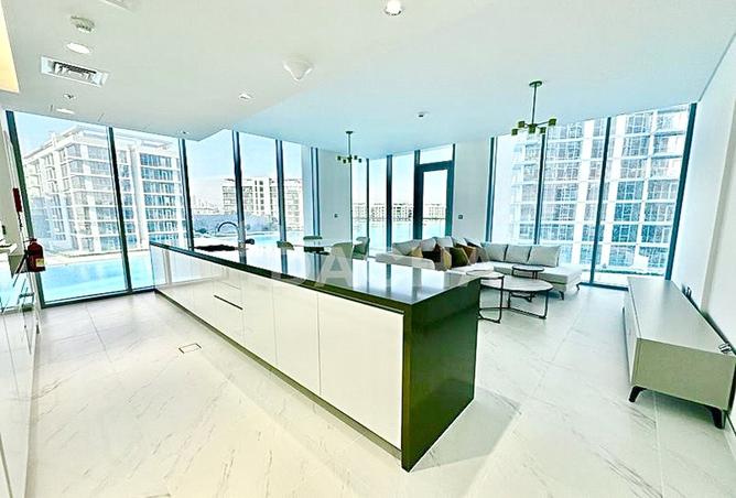 The spacious layout includes three ensuite bathrooms, a powder room, and ample storage for modern living. Bright and airy, the apartment features a large balcony with stunning lagoon views.